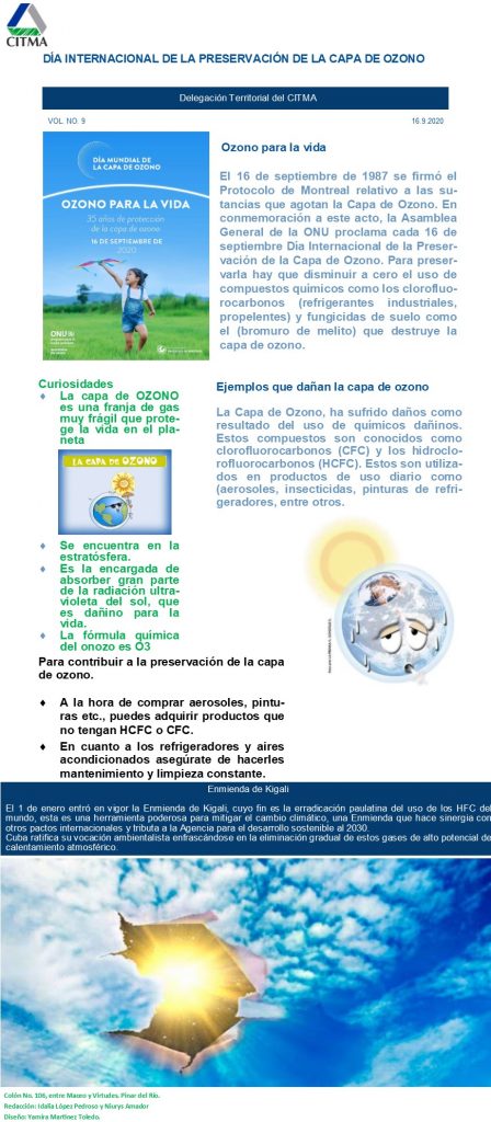DÍA INTERNACIONAL DE LA PRESERVACIÓN DE LA CAPA DE OZONO