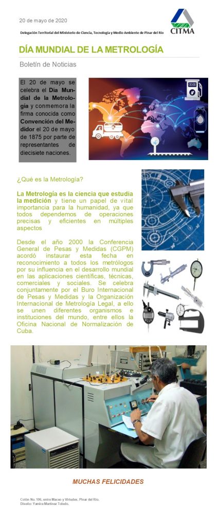 Día Mundial de la Metrología Deja un comentario / Boletines / Por Yamira Martinez Toledo otnDescarga Descargar en PDFImprimir Autor Yamira Martinez Toledo Ver todas las entradas