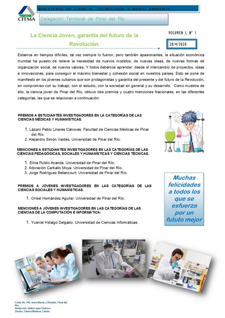 Ciencia Joven Deja un comentario / Boletines / Por Yamira Martinez Toledo Premios UCTDescarga Descargar en PDFImprimir Autor Yamira Martinez Toledo Ver todas las entradas